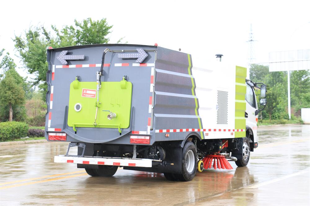 高效洗掃車利用高壓水流及傾斜掃刷將垃圾掃**吸盤前面,在風(fēng)機產(chǎn)生的負壓作業(yè)下,風(fēng)流在閉合的回路中將垃圾吸入垃圾箱中貯存,整個作業(yè)過程均是物理原理,不會產(chǎn)生化學(xué)廢料或垃圾外泄對環(huán)境的二次污染,同時,后噴霧的降塵有效的降低了空氣中粉塵濃度,解決粉塵污染問題。