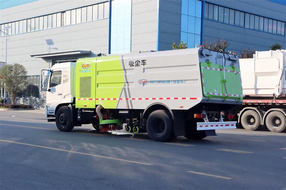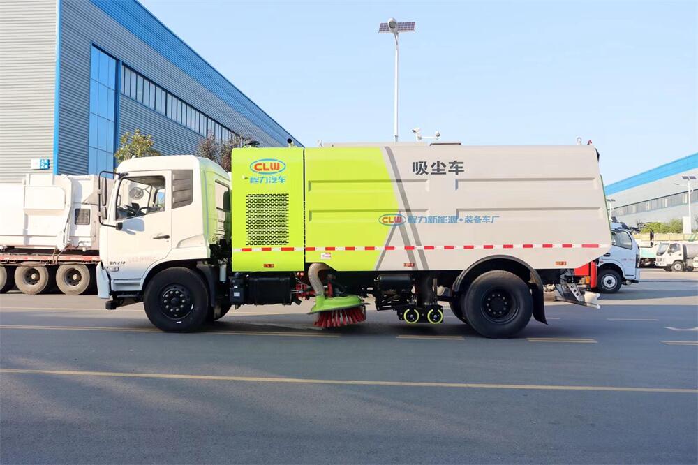 高效洗掃車利用高壓水流及傾斜掃刷將垃圾掃**吸盤前面,在風機產生的負壓作業(yè)下,風流在閉合的回路中將垃圾吸入垃圾箱中貯存,整個作業(yè)過程均是物理原理,不會產生化學廢料或垃圾外泄對環(huán)境的二次污染,同時,后噴霧的降塵有效的降低了空氣中粉塵濃度,解決粉塵污染問題。
