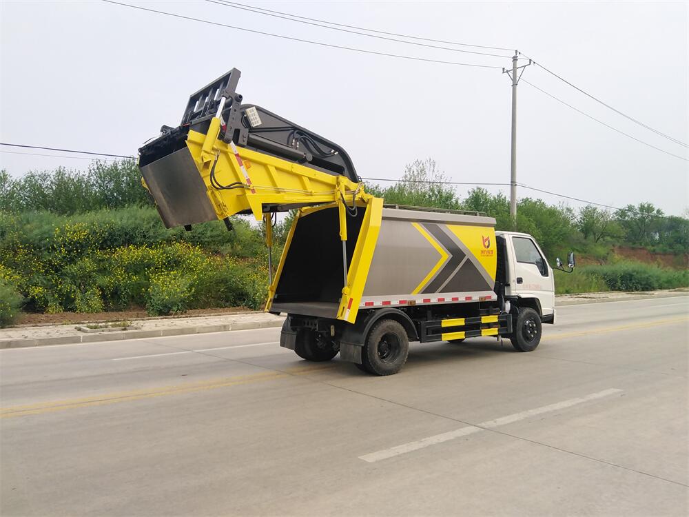 上裝配置:垃圾箱容積:6方,新款平面弧形廂體,廂體材料為武鋼優(yōu)質(zhì)碳鋼,PLC一鍵操作**,手電一體操作模式,兩側(cè)雙電控,帶駕駛室內(nèi)操作,底板支撐加強(qiáng),雙向壓縮,開放式易清潔污水箱。壓縮式垃圾車采用機(jī)電液一體化技術(shù),借助機(jī)、電、液聯(lián)合自動**系統(tǒng)、電腦**、手動操作系統(tǒng),通過填裝器和推鏟等專用裝置,實現(xiàn)垃圾倒入、壓碎或壓扁、強(qiáng)力裝填,把垃圾擠入車廂并壓實和推卸,污水全部進(jìn)入污水廂,解決了垃圾運(yùn)輸過程中的二次污染的問題。壓縮式垃圾車具有自動反復(fù)壓縮以及蠕動壓縮功能,壓縮比高、密封性好、裝載量大﹑操作方便、環(huán)保性好﹑整車?yán)霉β矢叩葍?yōu)點。作業(yè)自動化,垃圾收集方式簡便、高效。后翻轉(zhuǎn)機(jī)構(gòu)選裝:1、掛塑料桶式翻轉(zhuǎn)機(jī)構(gòu);2、掛鐵桶式翻轉(zhuǎn)機(jī)構(gòu);3、擺臂式翻轉(zhuǎn)機(jī)構(gòu); 4、簸箕斗式翻轉(zhuǎn)機(jī)構(gòu)。