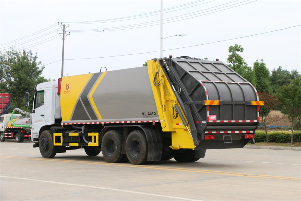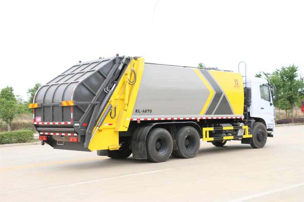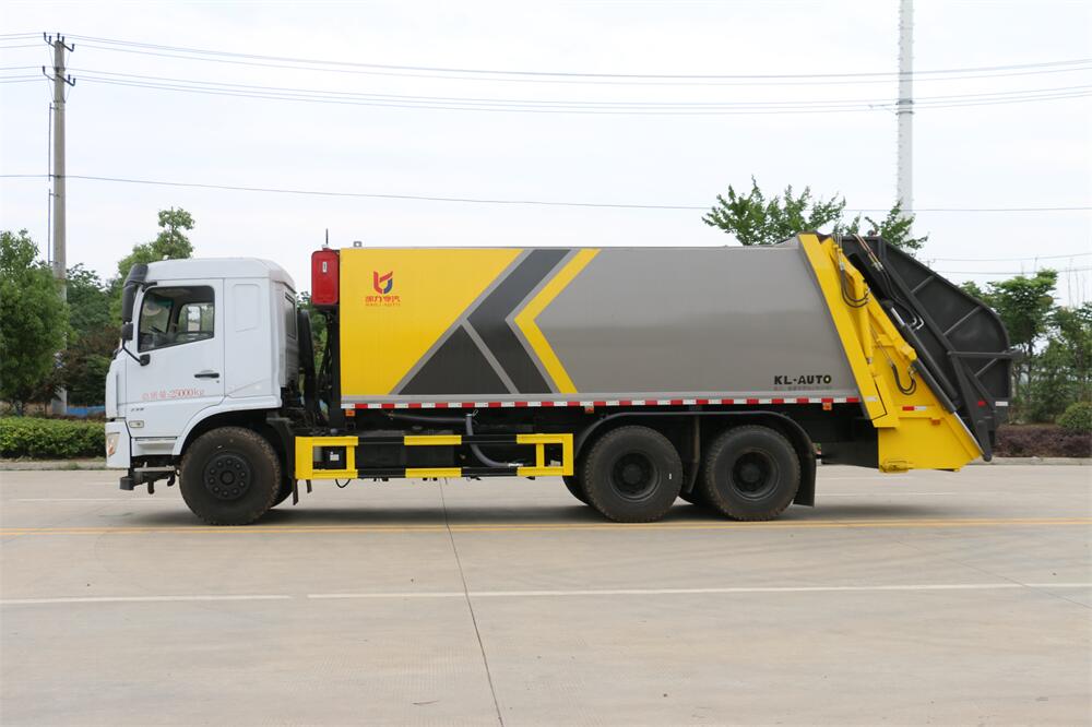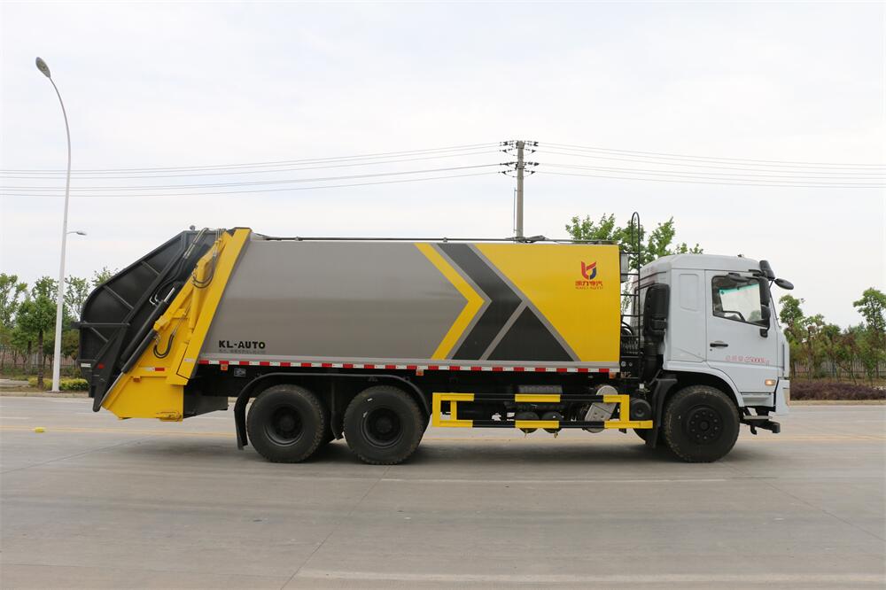上裝配置:垃圾箱容積:18方,新款平面弧形廂體,廂體材料為武鋼優(yōu)質(zhì)碳鋼,PLC一鍵操作**,手電一體操作模式,兩側(cè)雙電控,帶駕駛室內(nèi)操作,底板支撐加強,雙向壓縮,開放式易清潔污水箱。壓縮式垃圾車采用機電液一體化技術(shù),借助機、電、液聯(lián)合自動**系統(tǒng)、電腦**、手動操作系統(tǒng),通過填裝器和推鏟等專用裝置,實現(xiàn)垃圾倒入、壓碎或壓扁、強力裝填,把垃圾擠入車廂并壓實和推卸,污水全部進入污水廂,解決了垃圾運輸過程中的二次污染的問題。壓縮式垃圾車具有自動反復(fù)壓縮以及蠕動壓縮功能,壓縮比高、密封性好、裝載量大﹑操作方便、環(huán)保性好﹑整車?yán)霉β矢叩葍?yōu)點。作業(yè)自動化,垃圾收集方式簡便、高效。后翻轉(zhuǎn)機構(gòu)選裝:1、掛塑料桶式翻轉(zhuǎn)機構(gòu);2、掛鐵桶式翻轉(zhuǎn)機構(gòu);3、擺臂式翻轉(zhuǎn)機構(gòu); 4、簸箕斗式翻轉(zhuǎn)機構(gòu)。