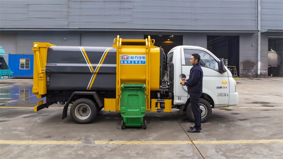 上裝?要主?配置:嚴?按格?照?告公?尺?制寸?作,箱體采用Q345?鋼錳?板?接焊?而成,皖?油液?泵,威森博樂多路閥,?森威?博?油樂?缸,箱體?部內?推鏟卸料(不帶舉升功能),?蓋后?液?開壓?啟,拉桿?提式?升機,掛240L標準?圾垃?桶,手電一體操作!