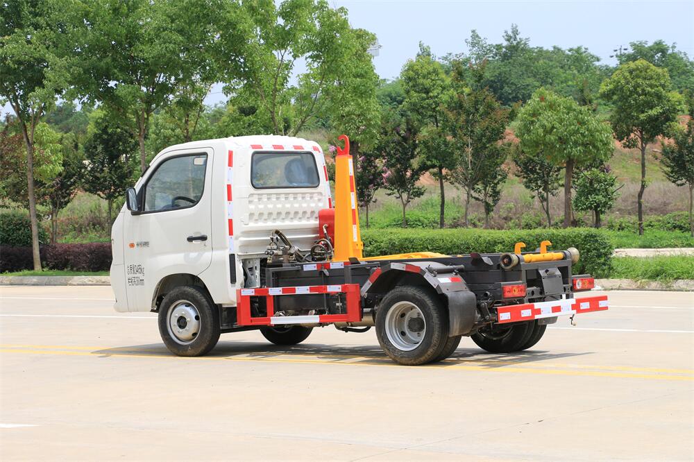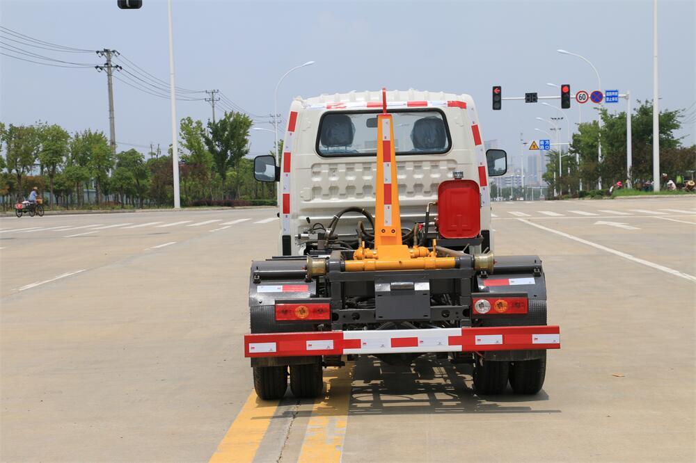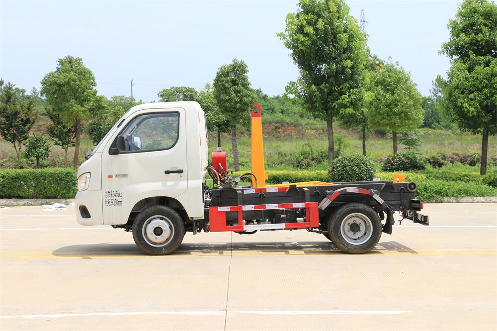 勾臂式垃圾車(車廂可卸式垃圾車)介紹: 車廂可卸式垃圾車又叫拉臂式垃圾車,是一種采用高新設(shè)計(jì)可伸縮的鉤臂,實(shí)現(xiàn)垃圾廂的二次吊裝,自吊上放下,可自行傾倒垃圾的環(huán)衛(wèi)設(shè)備。 拉臂式垃圾車結(jié)構(gòu)簡單,操作穩(wěn)定方便,裝卸效率高,機(jī)械化程度高,節(jié)省人力。鉤臂垃圾車一車可帶多個(gè)垃圾廂,在裝卸的運(yùn)輸過程中可有效地避免二次污染。 拉臂垃圾車采用高新設(shè)計(jì)可擺動(dòng)的鉤臂,垃圾箱由框架、開啟油缸、滑輪、后門和若干加強(qiáng)框架與鋼板焊接而成。調(diào)換貨廂快捷方便,貨廂上帶蓋(倒垃圾時(shí)可翻開),鉤臂垃圾車?yán)鴰w可選用碳鋼、不銹鋼材質(zhì)、內(nèi)部采取環(huán)氧樹脂防腐處理,改裝部分與原車底盤為可分離式,維修方便且保持了原車的機(jī)動(dòng)性及行駛性能。