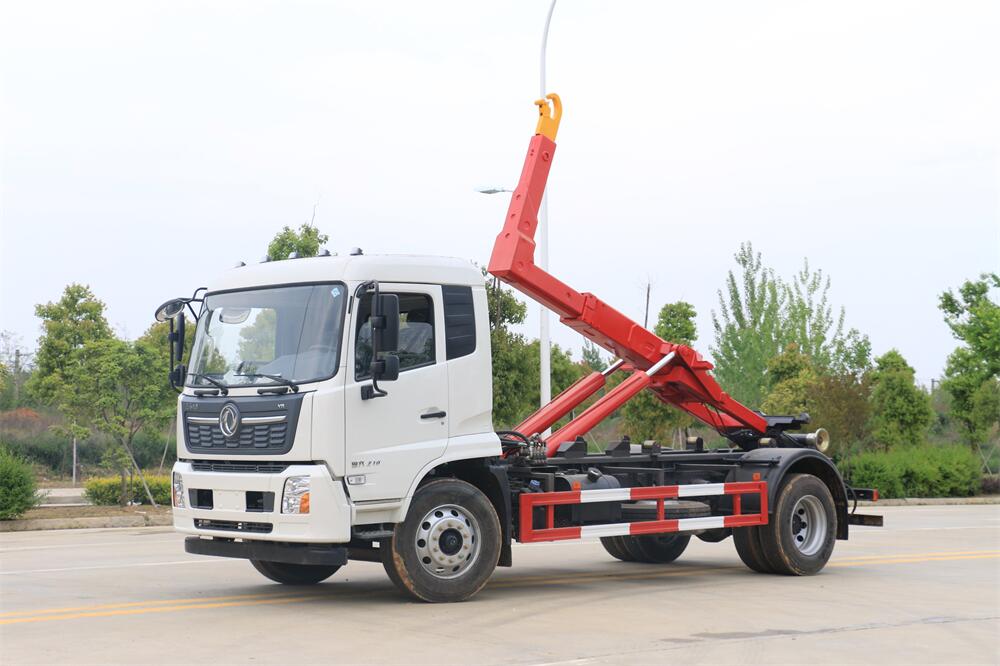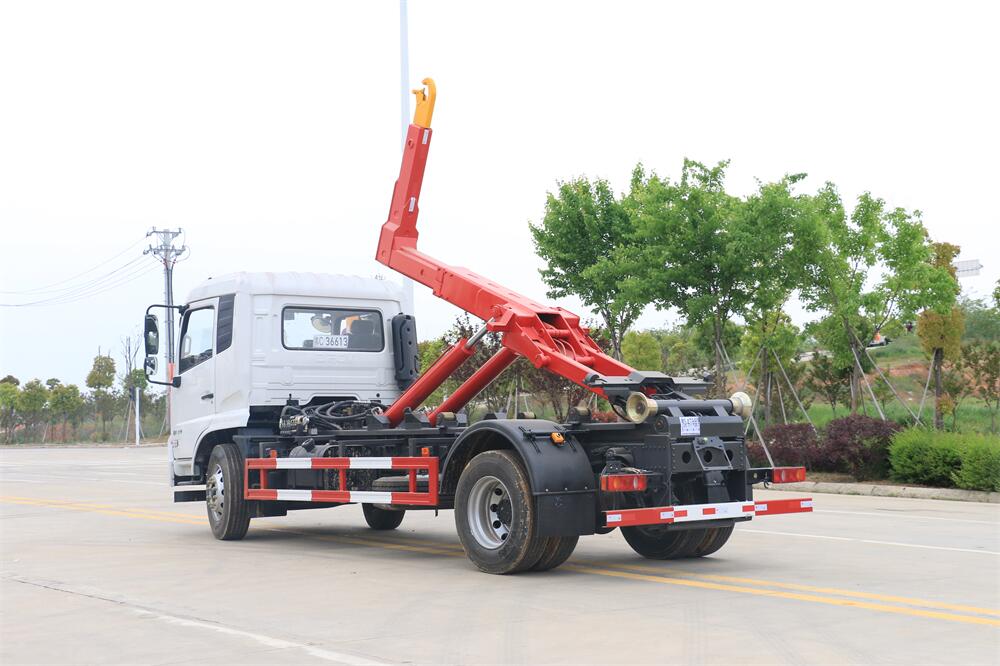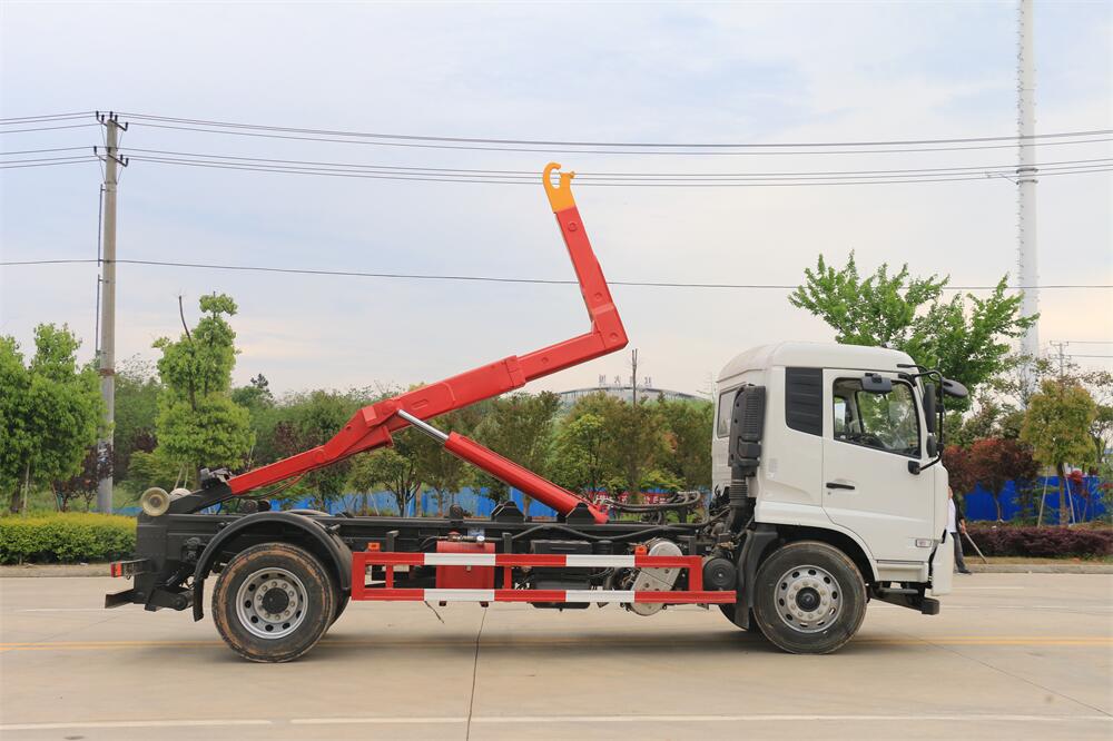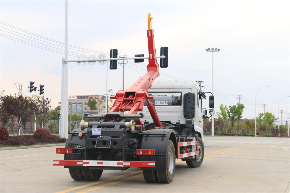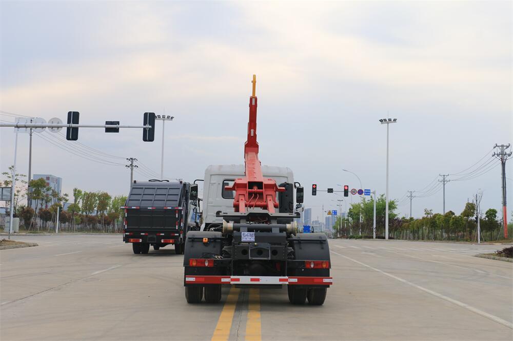 勾臂式垃圾車(車廂可卸式垃圾車)介紹: 車廂可卸式垃圾車又叫拉臂式垃圾車,是一種采用高新設(shè)計可伸縮的鉤臂,實現(xiàn)垃圾廂的二次吊裝,自吊上放下,可自行傾倒垃圾的環(huán)衛(wèi)設(shè)備。 拉臂式垃圾車結(jié)構(gòu)簡單,操作穩(wěn)定方便,裝卸效率高,機(jī)械化程度高,節(jié)省人力。鉤臂垃圾車一車可帶多個垃圾廂,在裝卸的運(yùn)輸過程中可有效地避免二次污染。 拉臂垃圾車采用高新設(shè)計可擺動的鉤臂,垃圾箱由框架、開啟油缸、滑輪、后門和若干加強(qiáng)框架與鋼板焊接而成。調(diào)換貨廂快捷方便,貨廂上帶蓋(倒垃圾時可翻開),鉤臂垃圾車?yán)鴰w可選用碳鋼、不銹鋼材質(zhì)、內(nèi)部采取環(huán)氧樹脂防腐處理,改裝部分與原車底盤為可分離式,維修方便且保持了原車的機(jī)動性及行駛性能。