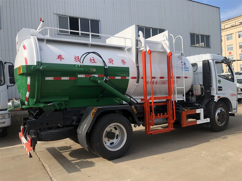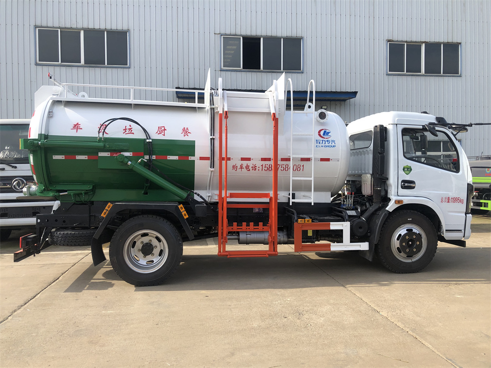 上裝配置:罐體容積8m3,配備120L/240L掛桶提升翻轉(zhuǎn)機(jī)構(gòu),液壓系統(tǒng),后蓋液壓鎖緊開啟,罐體可以舉升自卸,尾部帶自流閥;用于運(yùn)輸液態(tài)垃圾,其特點(diǎn)操作簡單,密封性好,無泄漏,無異味;可選裝固液分離功能,推板擠壓功能,常用于餐館的垃圾轉(zhuǎn)運(yùn)處理。