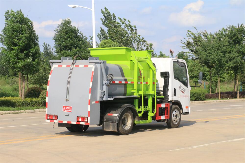 上裝配置:罐體容積6m3,配備120L/240L掛桶提升翻轉機構,液壓系統,后蓋液壓鎖緊開啟,罐體可以舉升自卸,尾部帶自流閥;用于運輸液態垃圾,其特點操作簡單,密封性好,無泄漏,無異味;可選裝固液分離功能,推板擠壓功能,常用于餐館的垃圾轉運處理。