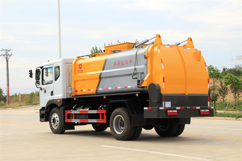 餐廚垃圾車或者餐余垃圾車、泔水車,是用于收集和運輸生活垃圾、食品垃圾(泔水)及城市淤泥的專用車輛。具有自裝、自卸、固液分離、壓縮垃圾自動化程度高、密封性好、操作簡便、無污水泄露和異味的散發等特點。