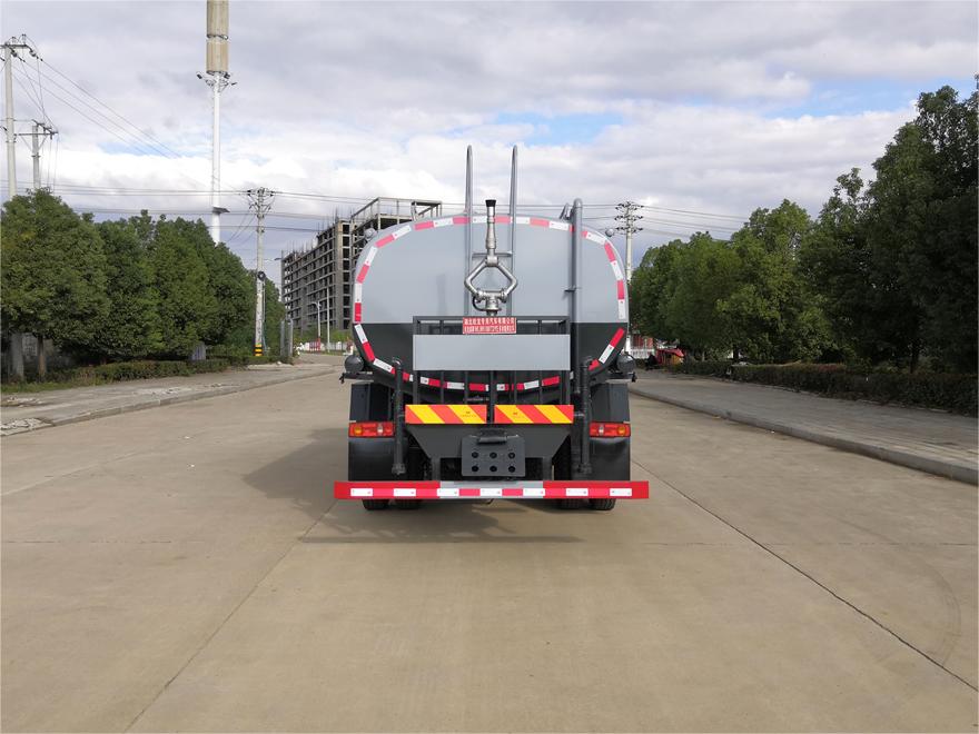 灑水車前裝有鴨形噴嘴或圓頭沖嘴,后面裝有圓柱開灑水噴嘴或蓮蓬頭噴嘴,后部有一工作平臺,裝配有水炮。后部還可裝8個噴嘴(選裝)。