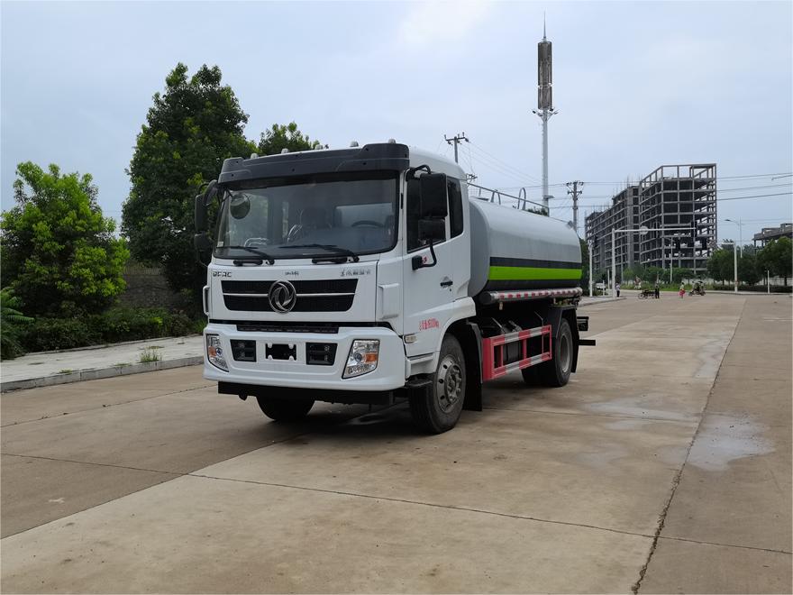 灑水車前裝有鴨形噴嘴或圓頭沖嘴,后面裝有圓柱開灑水噴嘴或蓮蓬頭噴嘴,后部有一工作平臺,裝配有水炮。后部還可裝8個噴嘴(選裝)。