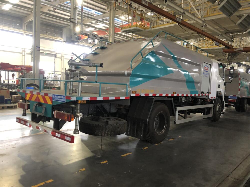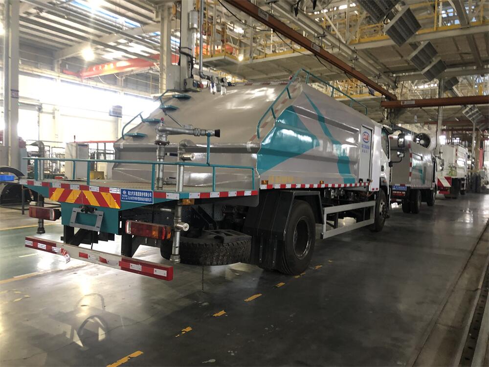 上裝配置:罐體容積為 8立方,選配風(fēng)送式霧炮機(jī)組射程30米、40米、50米、60米、80米、100米、120米霧炮,罐體鋼板為4mm碳鋼Q235材質(zhì),罐內(nèi)隔板具有防波作用,以減輕汽車行駛時(shí)罐體液體沖擊,罐體及整車外形尺寸按照公告。帶大功率專用灑水泵,泵可自吸自排,整車前沖、后灑、側(cè)噴、帶65消防接口,后平臺(tái)配CLW-50、CLW-60、CLW-80、CLW-100、CLW-120型風(fēng)送式霧炮機(jī)組;罐體前封頭配大功率柴油發(fā)電機(jī)組;前封頭帶水位計(jì),后平臺(tái)主管路帶1寸澆花接口,后爬梯。帶兩根輸水管及陰陽(yáng)端。罐體顏色:銀/灰/綠,罐體兩側(cè)噴“多功能抑塵車”字樣,貼反光標(biāo)示。