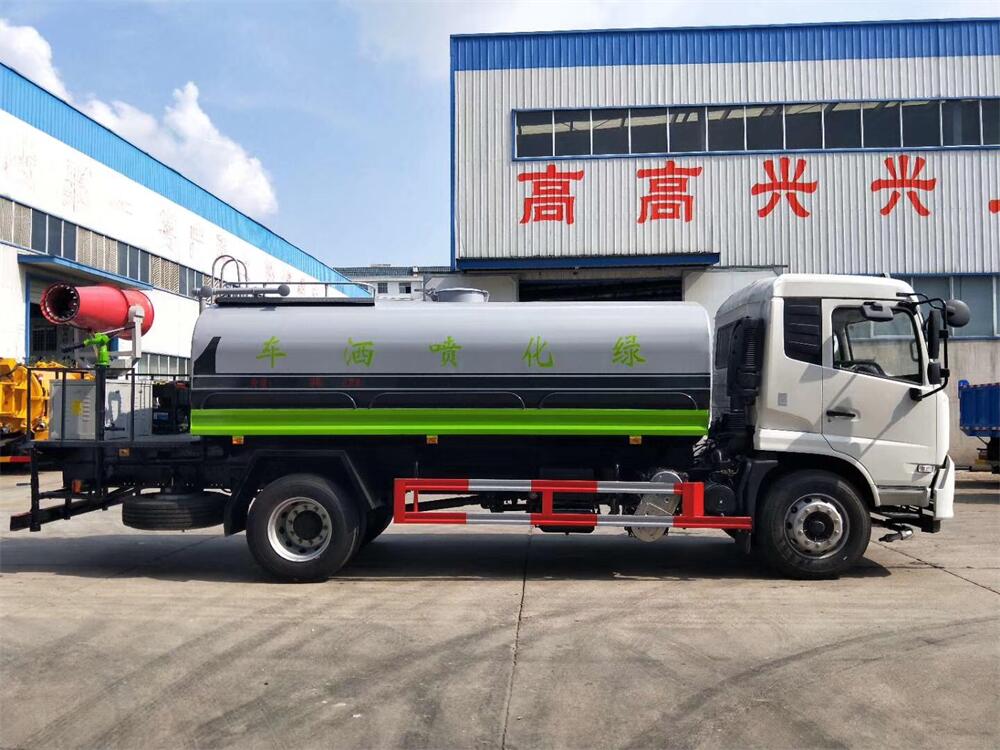 上裝配置:罐體容積 12-15立方,風送式霧炮機組30米,40米選擇,罐體采用國標Q235碳鋼材質,罐體厚度4MM,前后封頭5MM加厚型,罐體內雙層隔板具有防波蕩作用,以減輕汽車行駛時罐內液體沖擊;灑水車整車及外形尺寸嚴格按照**機動車公告制作而成;裝配大功率專用灑水泵,前沖、后灑、側噴、后平臺帶綠化灑水炮,灑水炮可全方位旋轉,可連續調成直沖狀、大雨、小雨、毛毛雨;配消防接口,自流閥,濾網,帶自吸自排功能。前封頭帶水位計,后平臺主管路帶1寸澆花接口,后爬梯,帶1個消防接頭,帶1個自流閥,1個過濾裝置,其余標配。