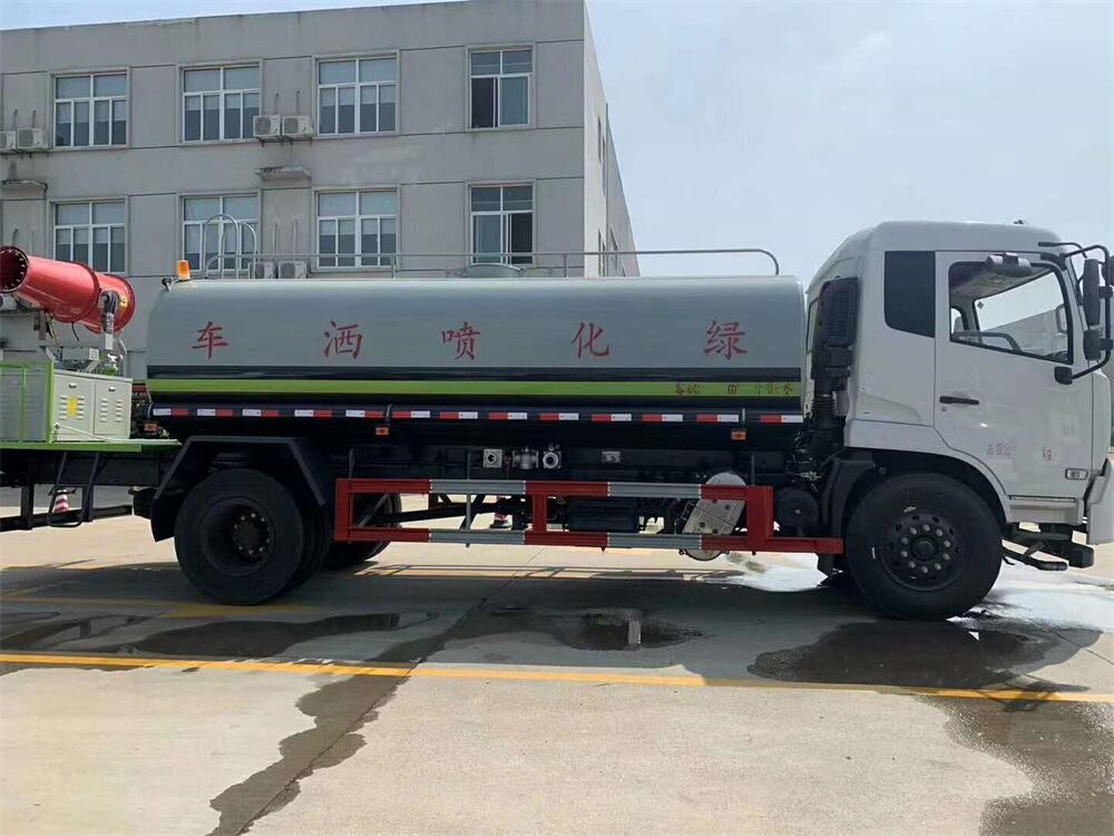 上裝配置:罐體容積 12-15立方,風(fēng)送式霧炮機組30米,40米選擇,罐體采用國標(biāo)Q235碳鋼材質(zhì),罐體厚度4MM,前后封頭5MM加厚型,罐體內(nèi)雙層隔板具有防波蕩作用,以減輕汽車行駛時罐內(nèi)液體沖擊;灑水車整車及外形尺寸嚴(yán)格按照**機動車公告制作而成;裝配大功率專用灑水泵,前沖、后灑、側(cè)噴、后平臺帶綠化灑水炮,灑水炮可全方位旋轉(zhuǎn),可連續(xù)調(diào)成直沖狀、大雨、小雨、毛毛雨;配消防接口,自流閥,濾網(wǎng),帶自吸自排功能。前封頭帶水位計,后平臺主管路帶1寸澆花接口,后爬梯,帶1個消防接頭,帶1個自流閥,1個過濾裝置,其余標(biāo)配。
