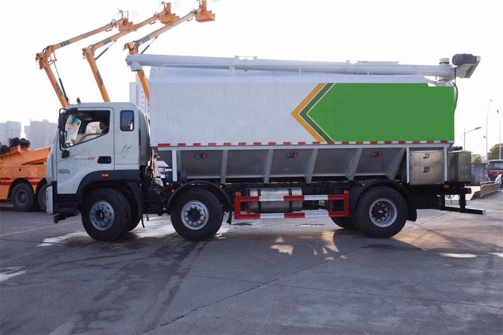 罐體配置:罐體采用2mm輕量化鋼板,整車3條絞龍(水平,垂直,出料),出料絞龍用液壓**舉升,可左右旋轉(zhuǎn)180度。罐體內(nèi)分為4個(gè)倉,可以****各分倉卸料順序和速度。