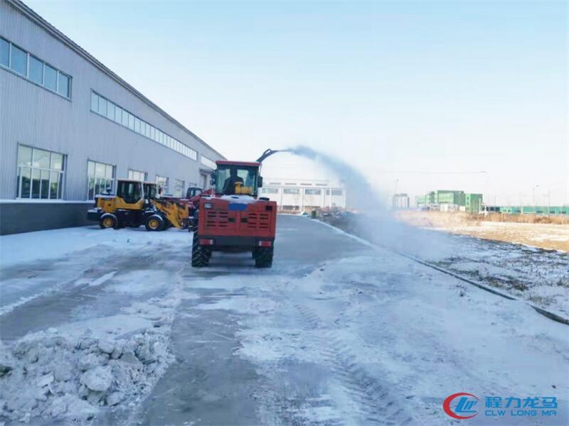 自帶動力型拋雪機:配有四缸55千瓦增壓發動機作為主動力,可調速變速箱,根據下雪的大小能改變拋雪的速度與拋雪距離,具有全無線遙控系統,無需對任何車輛改裝或加裝線路,內設置漩渦式高強度鉸籠,能將積雪鉸進進雪口,由離心式風扇強力吸入,通過出雪口,有效的達到除雪的理想工作,每小時可拋雪1000噸以上。