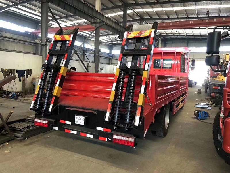 上裝采用5毫米花紋鋼板,120*120方鋼做橫梁,加強型雙爬梯.可定做液壓爬梯,可承載15噸以下挖機。也可加裝絞盤,可拉事故車等。公告拓展有雙節爬梯公告,可做雙節爬梯拉叉車,壓路機等鉆井設備!