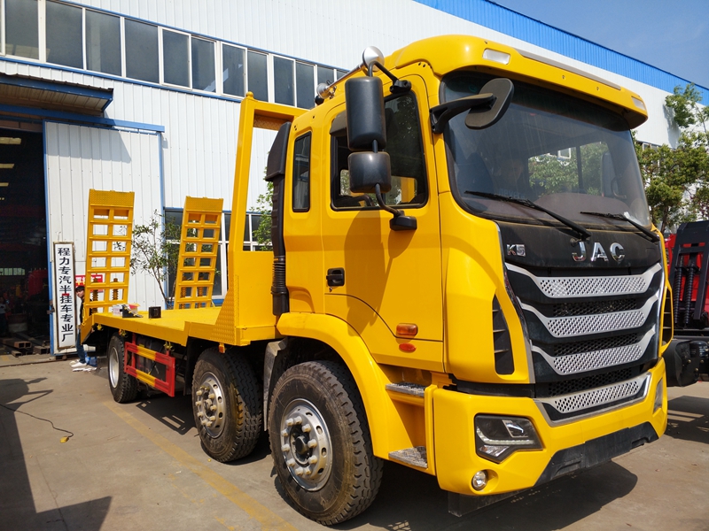 | 其他 | 江淮k5小三軸平板拖車采用格爾發(fā)高頂駕駛室,玉柴220馬力,法士特8檔變速箱,10.00R20 18PR鋼絲胎,280×80×8mm車架,5噸前橋、10噸后橋、電動門窗,原廠空調(diào)、行車記錄儀、ABS,氣囊座椅、電動翻轉(zhuǎn)等,可以加裝液壓折疊爬梯! | ||