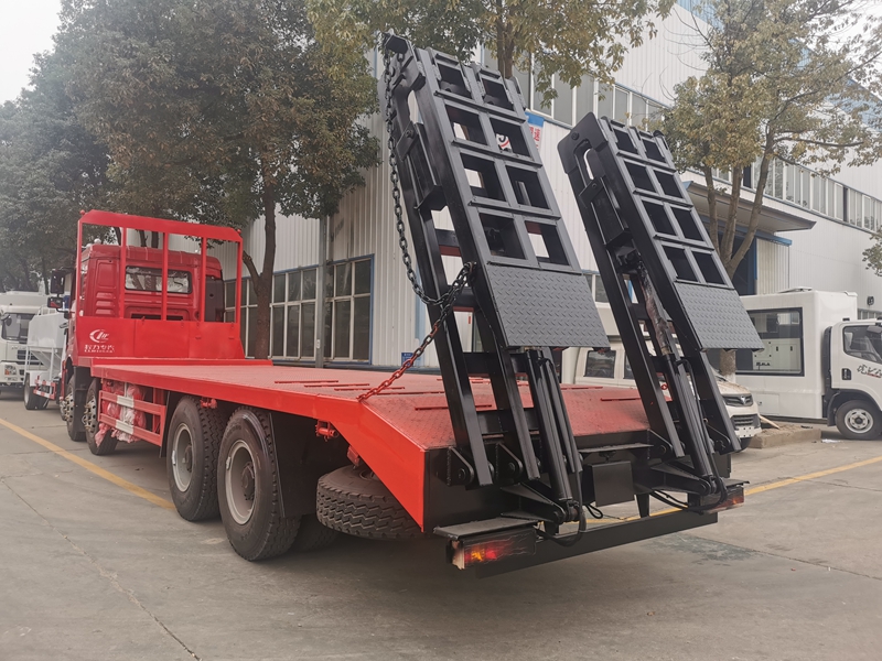 | 其他 | 備注:該車專用裝置為平板,用于工程機械和一些不可拆卸貨物的長途運輸.防護材料:Q235碳鋼,連接方式:左右側面與平板縱梁采用焊接連接, 后部防護與車架采用焊接連接,后部防護斷面尺寸(mm):50×120,后部防護離地高度(mm):490;隨底盤選裝同系列駕駛室、遮陽罩及保險杠,選裝不同樣式的爬梯.ABS系統生產廠家及型號為:廣州市科密汽車制動技術開發有限公司/CM4XL-4S/4K(4S/4M), 西安正昌電子有限責任公司/ZQFB-V, 浙江萬安科技股份有限公司/VIE ABS-Ⅱ;安裝具有衛星定位功能的行駛記錄儀.發動機WP12.375E50 對應的油耗值為:40.48。整車長/軸距/后懸對應關系為(mm):11900/1800+4575+1400/2600,11300/1800+3975+1400/2600,10900/1800+3575+1400/2600,10400/1800+3000+1400/2675.選裝不同樣式的爬梯結構。 | ||